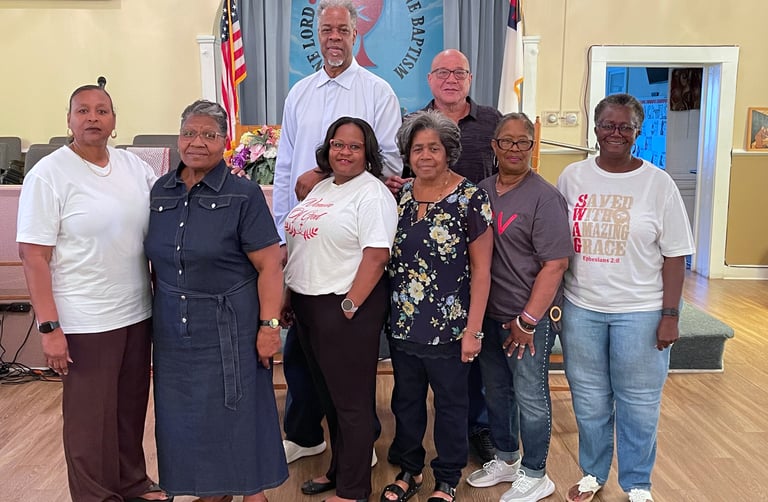 Sis. Shelia Crumbie, Deacon Clarrissa Hill, Sis. Dianna Boyers, Sis. Charolette Howard, Deacon Lavern Warfield, Sis. Minnie Trumbo Back: Bro. David V. Downey, Bro. Tim Avery
